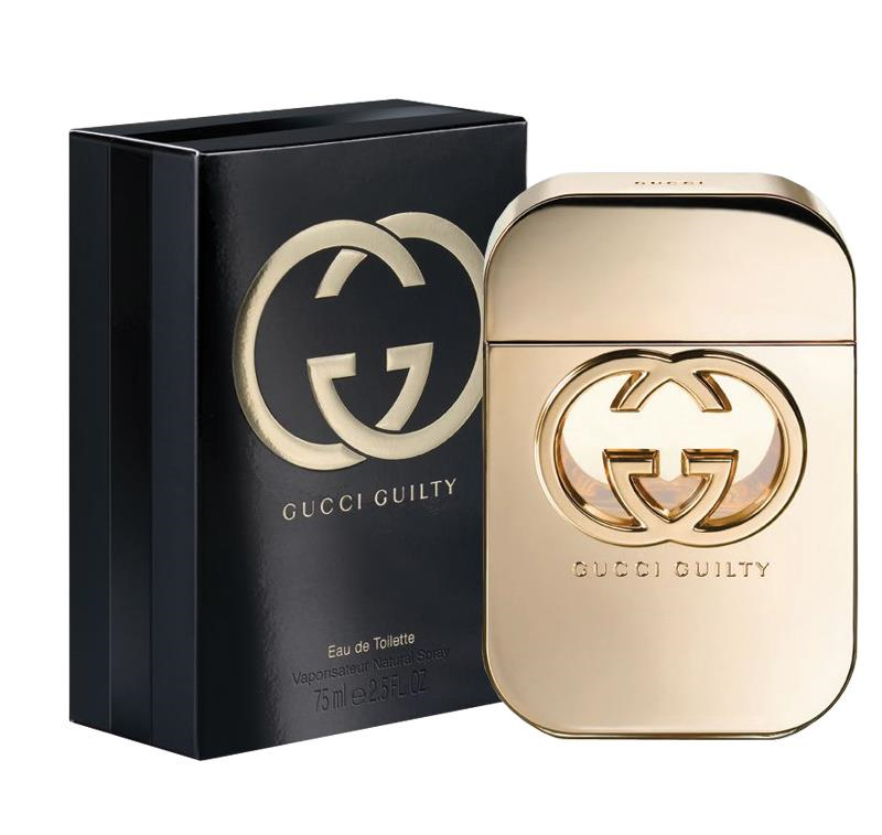 - Guilty, de Gucci;es una fragancia audaz para quienes marcan tendencia. Es una icónica eau de toilette oriental floral, con un frasco que representa el espíritu lujoso y sofisticado de la casa.