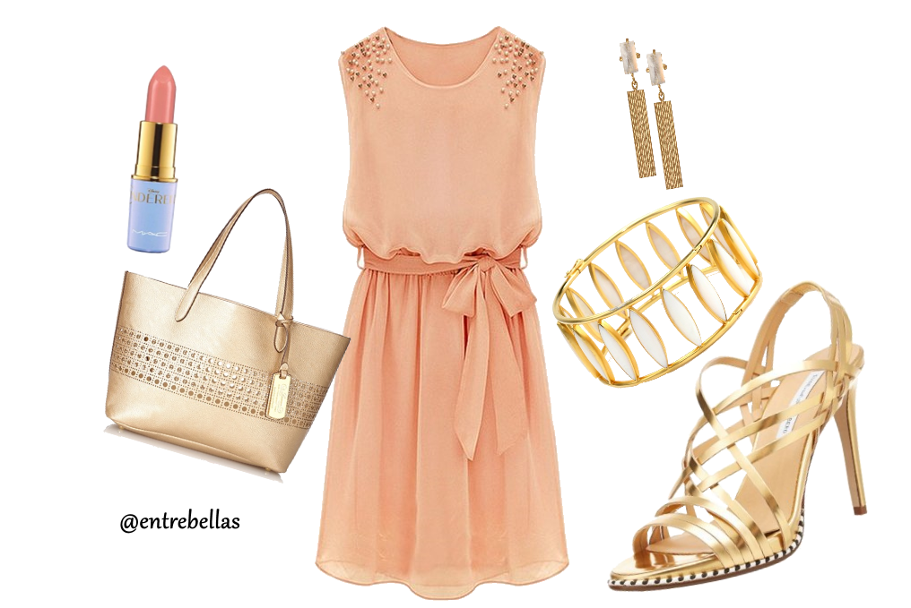 Recuerda que si llevas estampados los complementos deben ser en una sola tonalidad que combinen o contraste, en los accesorios dependiendo del look puedes llevar perlas, cadenas, brazaletes delicados. Y en el maquillaje destaca tus facciones,usa colores que combinen con el vestuario; pueden ser tonos nude, rosa, melocotón o malva. El cabello puedes llevarlo recogido o suelto.