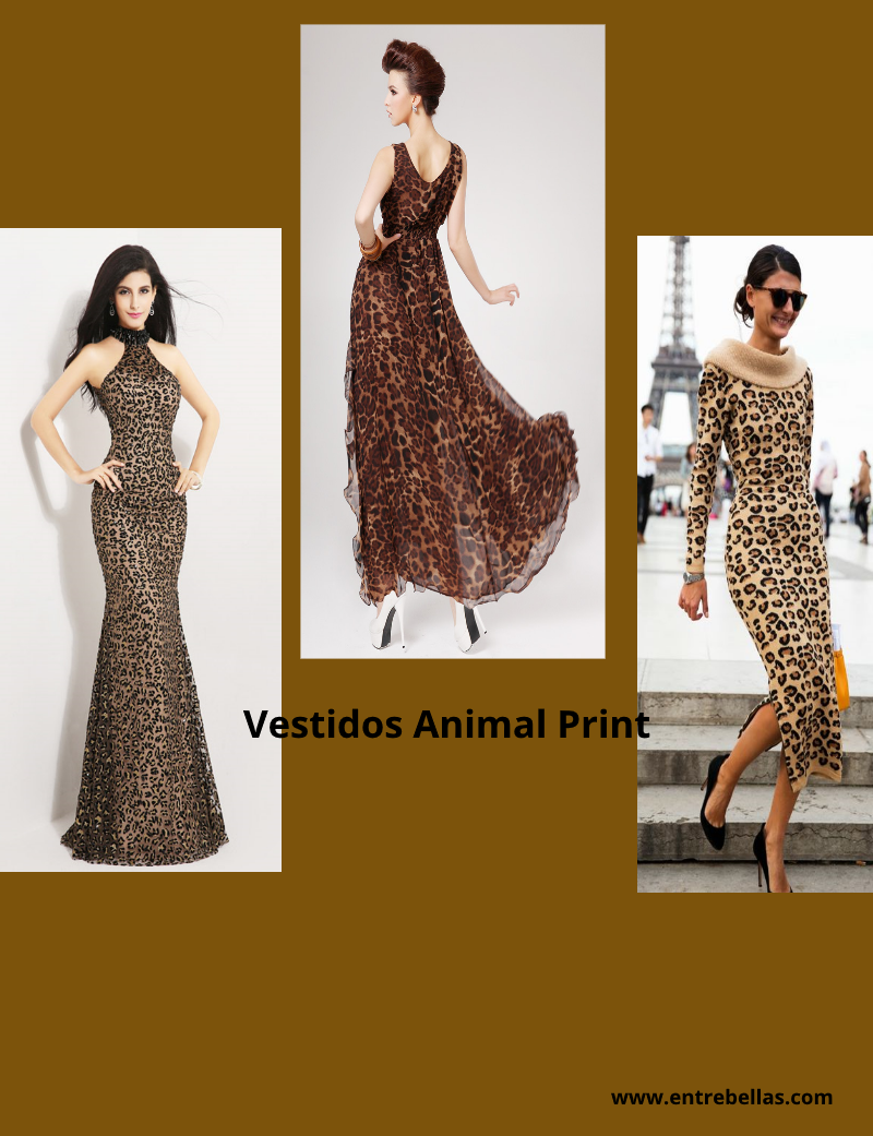 Los vestidos animal print son un estampado muy chic y elegante, y la tendencia se ha mantenido varios años. Recuerda cuando lleves un vestido animal print, combinarlo con calzado y accesorios de un solo color, preferiblemente de colores fuertes como rojo, fucsia, violeta, azul.
