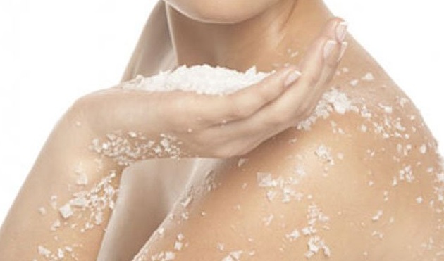 Derramas la media taza de sal marina o sal gruesa en una tina con agua caliente y allí colocas los brazos durante unos 10 minutos. El agua debe estar caliente para que así los poros se abran y se elimine el sebo.