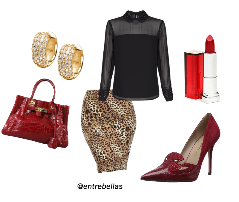 - Puedes combinar la falda tubo con una blusa estampada en animal print y te verás muy cautivadora, tan solo que la podrás llevar para una tarde.