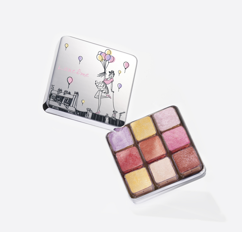 El estuche de Lancôme maquillaje My Parisian Pastels es sutilmente vintage; los cubos pastel se encuentran en una pequeña caja metálica que recuerda a los estuches de pinturas de nuestra infancia. El pack está customizado con la ilustración característica de la colección: una parisina paseando a su perrito sobre los tejados de París en un día de primavera con un bouquet de globos en la mano con el que envía un mensaje: From Lancôme With Love