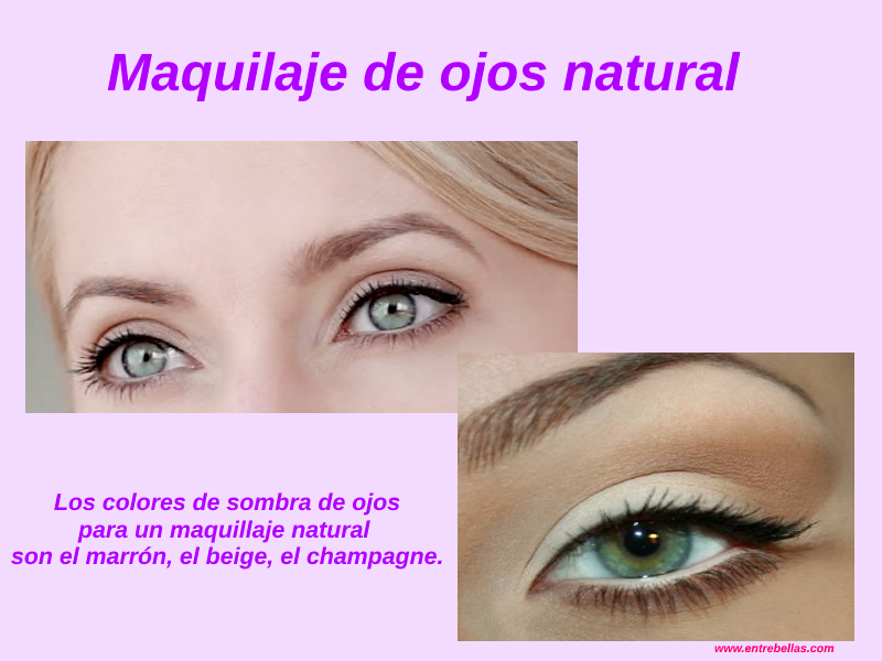 Los colores de sombra de ojos que te recomiendo llevar para un maquillaje natural para el día son el marrón, el beige, el champagne.