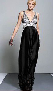 Para fiestas de noche;los vestidos lisos son tu mejor opción. Puedes buscar diseños con fajas de otro color o algún accesorio interesante. Recuerda, no pongas elementos llamativos en la zona de la panza, lucirá más grande y tú no lucirás proporcionada.