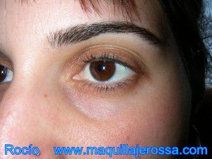 Correctores los hay a patadas, y además son diferentes depende de lo que quieras disimular. Si quieres disimular unas ojeras muy oscuras, el mejor producto que puedes usar es el que ha usado Rocío en las fotografías, el Supracolor de la marca Kryolan tono “Mandarin”. El producto en sí pigmenta una barbaridad, así que dura muchísimo, es una buena compra.