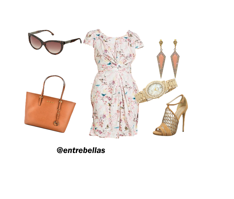 Este outfit se compone de un hermoso vestido de estampado floral, una de las tendencias de esta temporada, en colores muy neutros fácil de combinar con tonos mas fuertes para darle este toque a la ocasión que quieras llevarlo.
