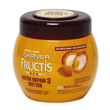 La mascarilla Nutri Repair 3 Butter de Garnier es un excelente producto para el cabello dañado, es un 3 en 1 para una nutrición intensa y duradera. Esta es la primera mascarilla forticante versátil de Fructis para nutrir el cabello; la puedes aplicar con el cabello húmedo o seco. Gracias a su fórmula enriquecida con Manteca de Karité y de 3 aceites ricos de Macadamia, Jojoba y Almendra. La fórmula se funde en el cabello para restablecer su fortaleza y su suavidad, sin efecto graso.